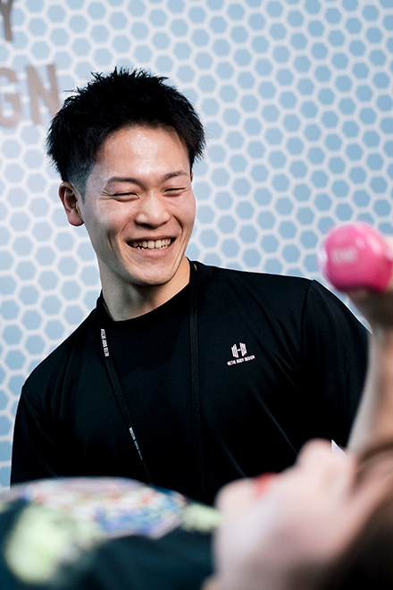 元々は大手のフィットネスジムに就職を希望していましたが、レシオボディデザインのコンセプト〈カラダが変われば人生が変わる〉はまさに私の成功体験が言語化されたもので、衝撃を受け入社を決意しました。